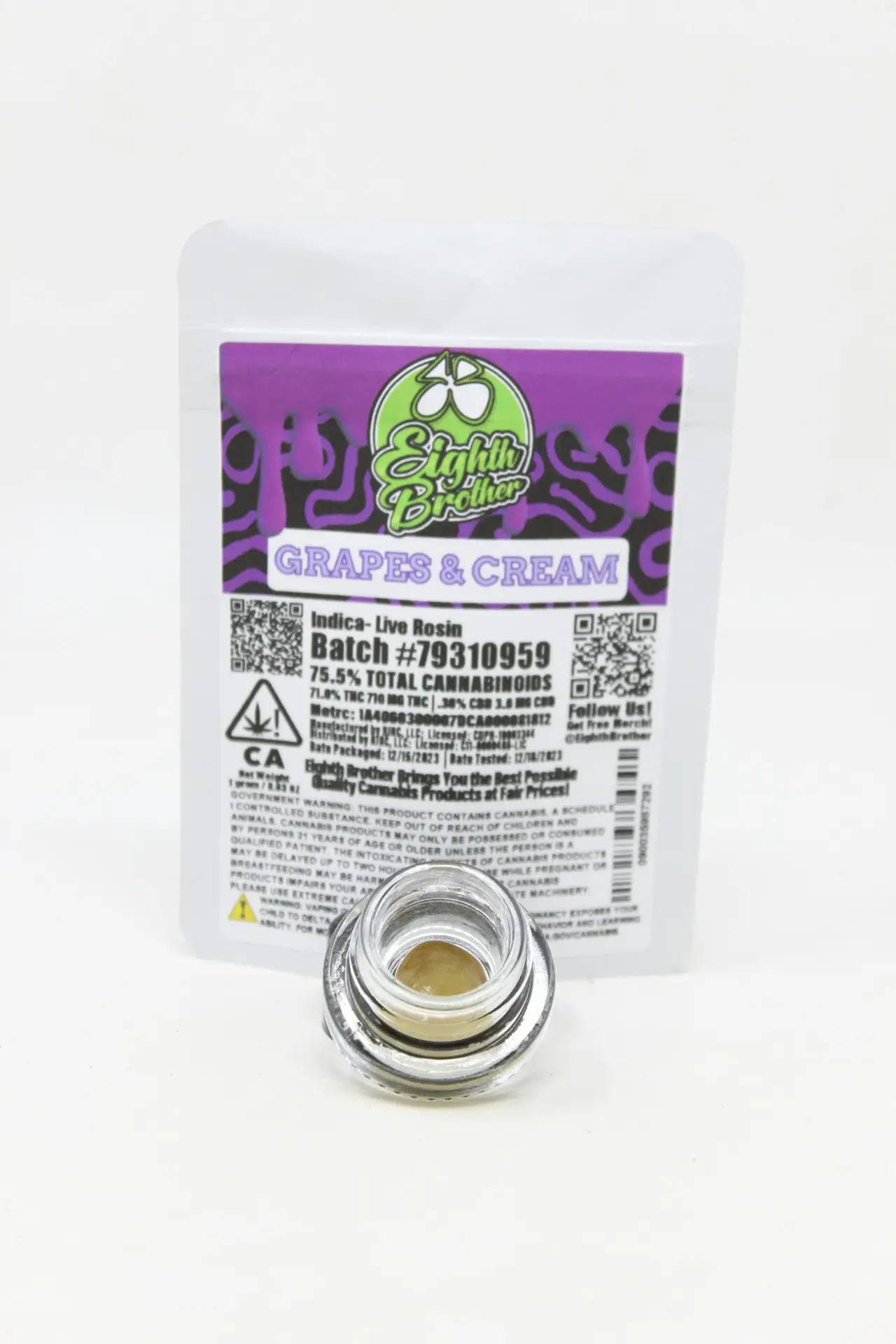 Eighth Brother upholds rigorous standards from cultivation to final jar. The starting flower is premium and cultivated with care, ensuring only the best plant material enters the extraction process. Furthermore, as a compliant product in regulated markets, this live rosin undergoes rigorous third-party laboratory testing. This testing verifies its high potency for accurate dosing and, most importantly, screens for any potential contaminants such as pesticides, residual solvents, or microbial impurities. This dedication to transparency and safety guarantees that you are dabbing a product of exceptional purity and reliability.